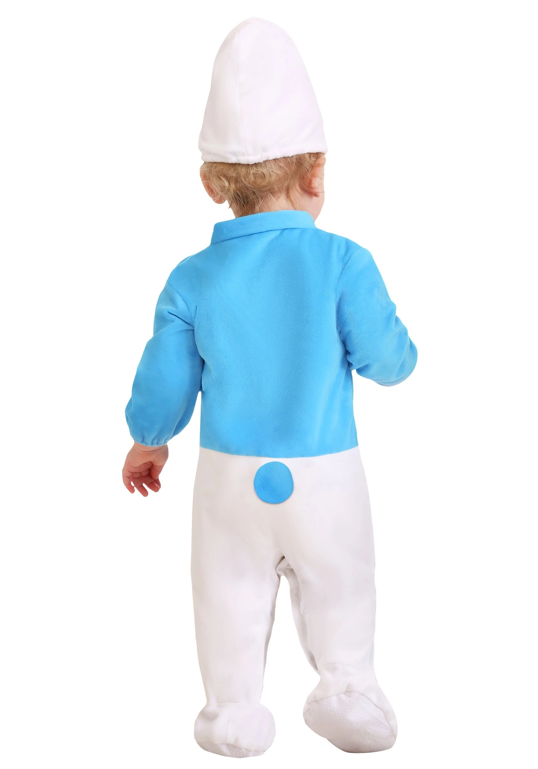 With this exclusive Infant Smurf Costume, your little one will look as sweet as Baby Smurf. Our team of designers went back to basics for this little Smurf. The onesie is color-blocked to give your baby Smurfy-blue skin and those signature white pants. Made from super-soft fleece, this officially licensed costume will keep baby warm for all your Halloween activities. The onesie features snap closures for easy diaper access (just in case). Of course, this costume comes with a white Smurf cap too. Made from fleece for comfortable wear, this little hat will sit safely with the help of an elastic band in the back.