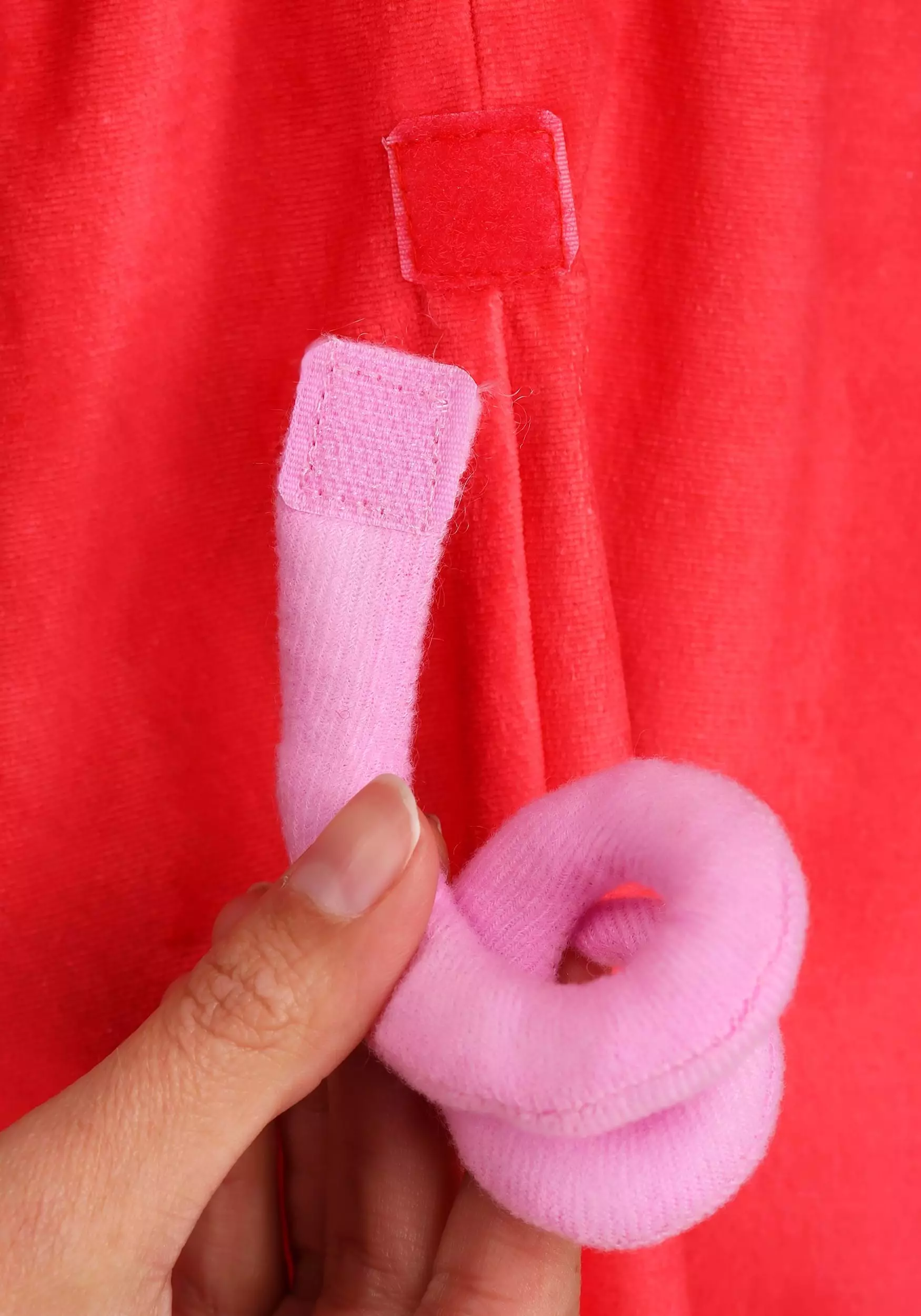 This iconic look is easy to pull off, thanks to this costume’s long pink sleeves and leggings. The design looks just like Peppa’s signature ensemble, and the attached hood can pull up over your kiddo’s head, revealing Peppa’s face. The tail ensures your child feels perfectly porcine, from snout to hooves.