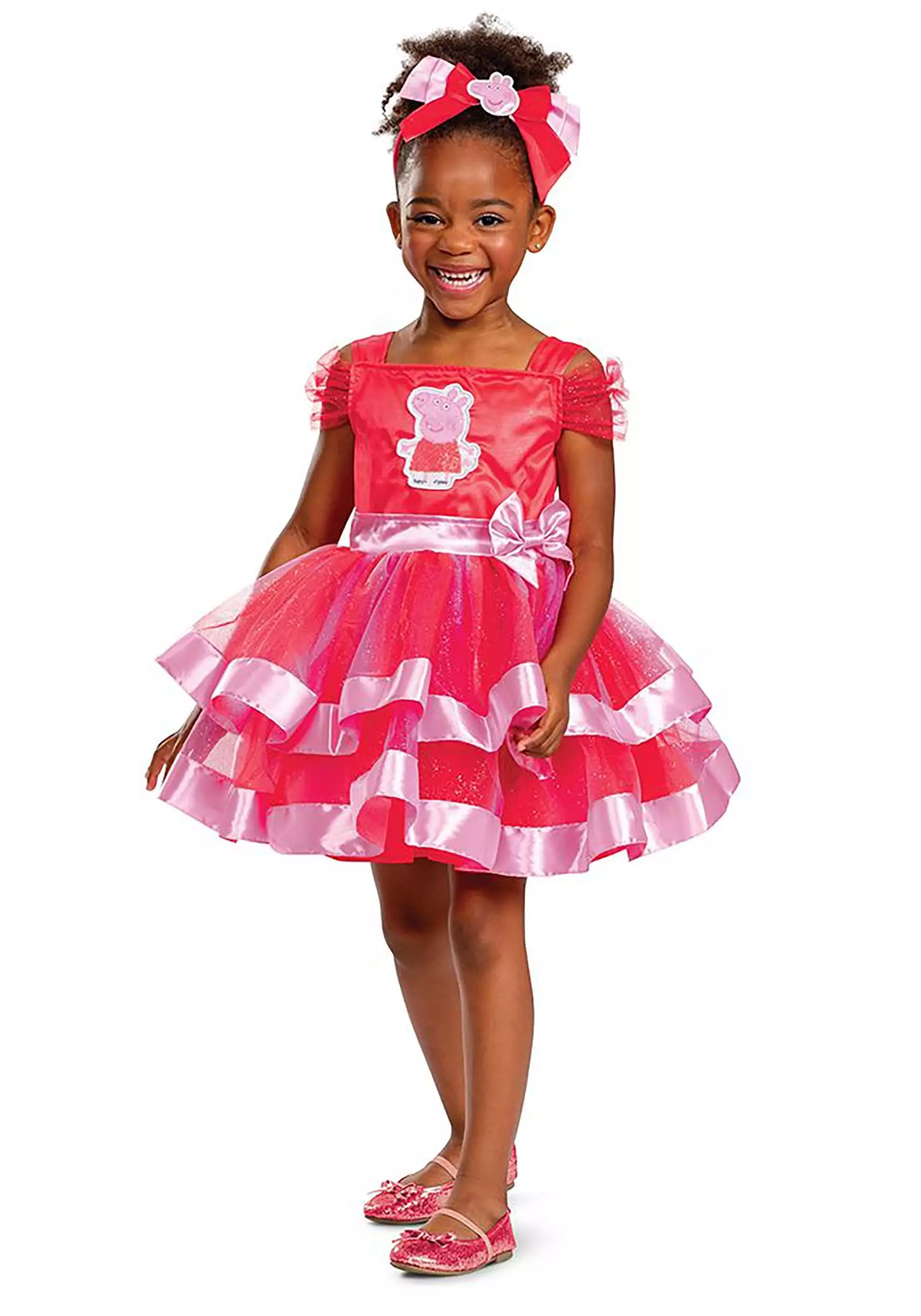 This adorable Peppa Pig Tutu Costume is a toddler size costume that’s officially licensed from the hit cartoon series! It comes with everything your young child needs to feel like Peppa, including a dress, a tail, and a headband. Each of the pieces are inspired by Peppa, so your little fan will love dressing up in this outfit, whether it’s for imaginative playtime or Halloween!