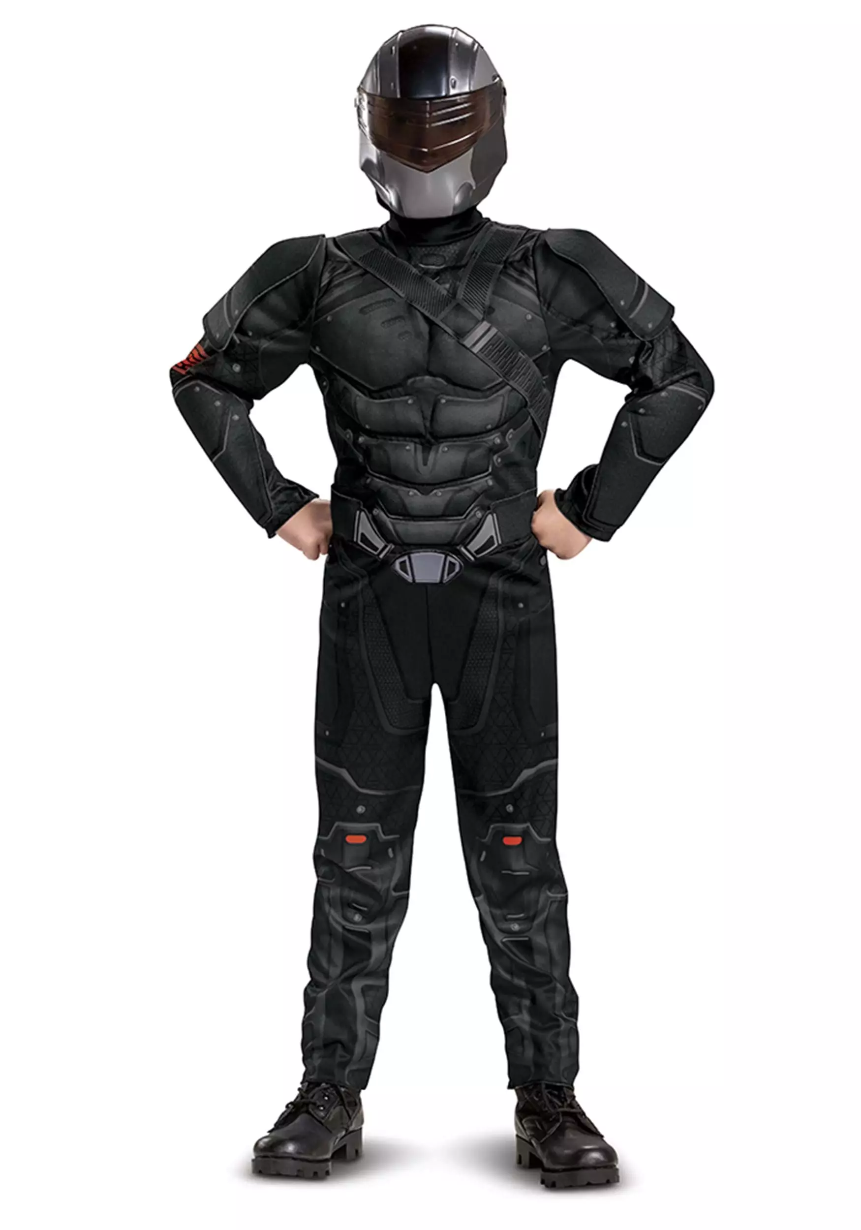 This kid’s Snake Eyes costume is officially licensed and comes with everything your child needs! It starts with a full jumpsuit, which has muscle padding in the chest and arms to give your child a buff and tough look. The suit fits with a fastener in the back, making it an easy costume to change into. The included fabric hood fits around your child’s head and the molded plastic mask fits into place with an elastic band. When your child has it all on, they’ll be ready to train for the next big mission!