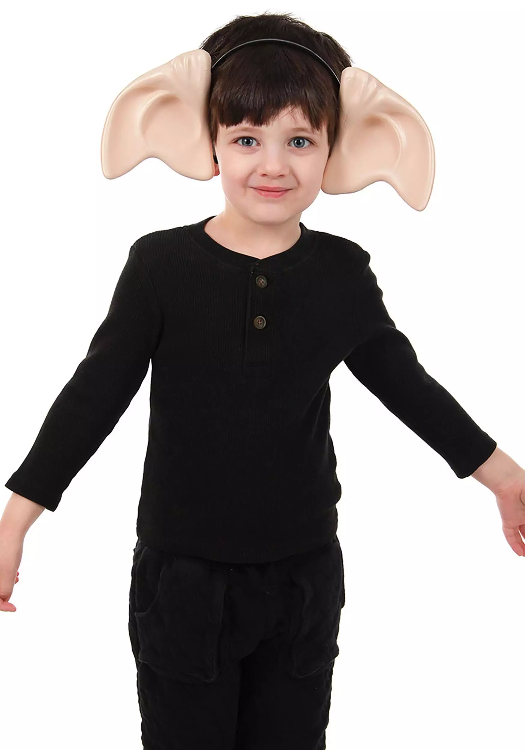 Dobby is known for his tennis ball-like green eyes, ragged pillowcase (at least at first), and large, flappy ears. These ears are designed to look just like the ears in the movies. They sit on the ends of a thin, simple headband, and they can be moved up or down the band so that they perfectly cover your human ears. So, will you dress up as the poor, Malfoy-owned version of Dobby? Or will you throw on three pairs of socks and a tea cozy as a free Dobby?