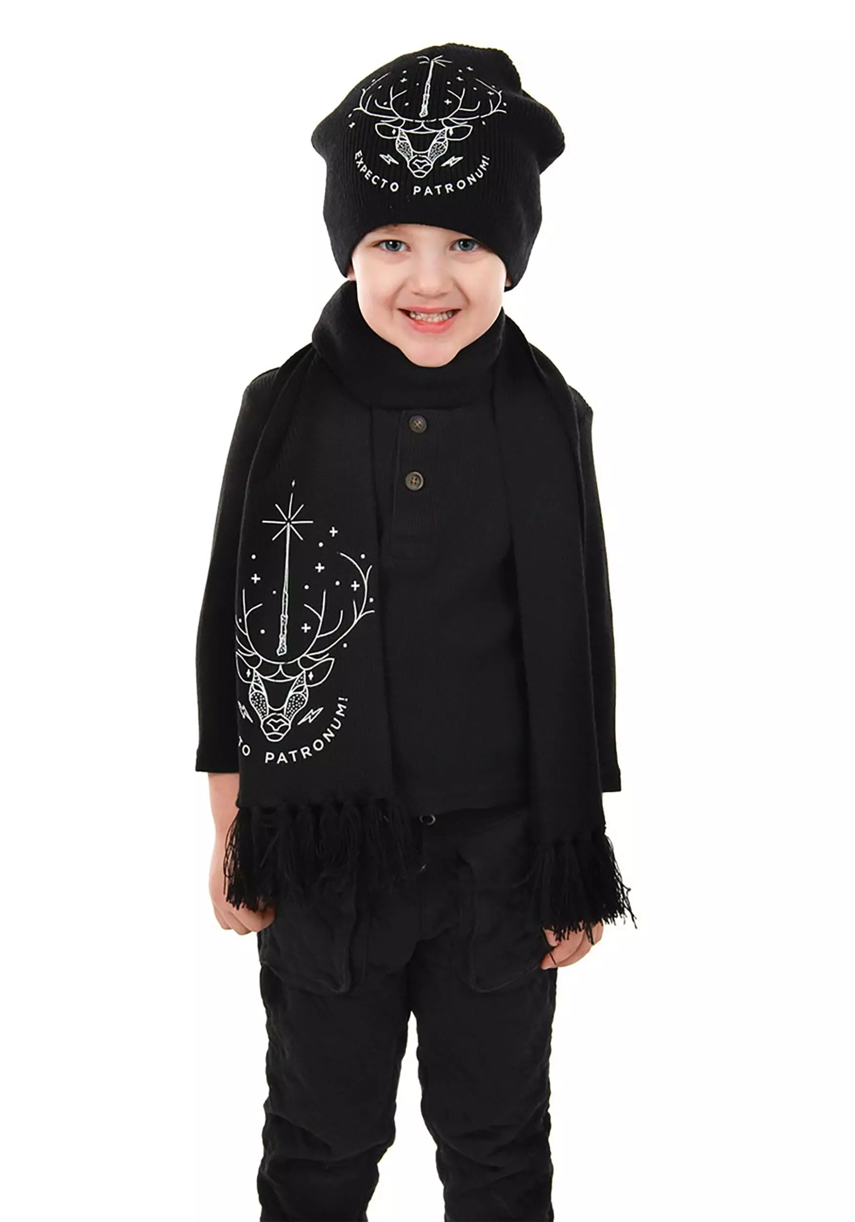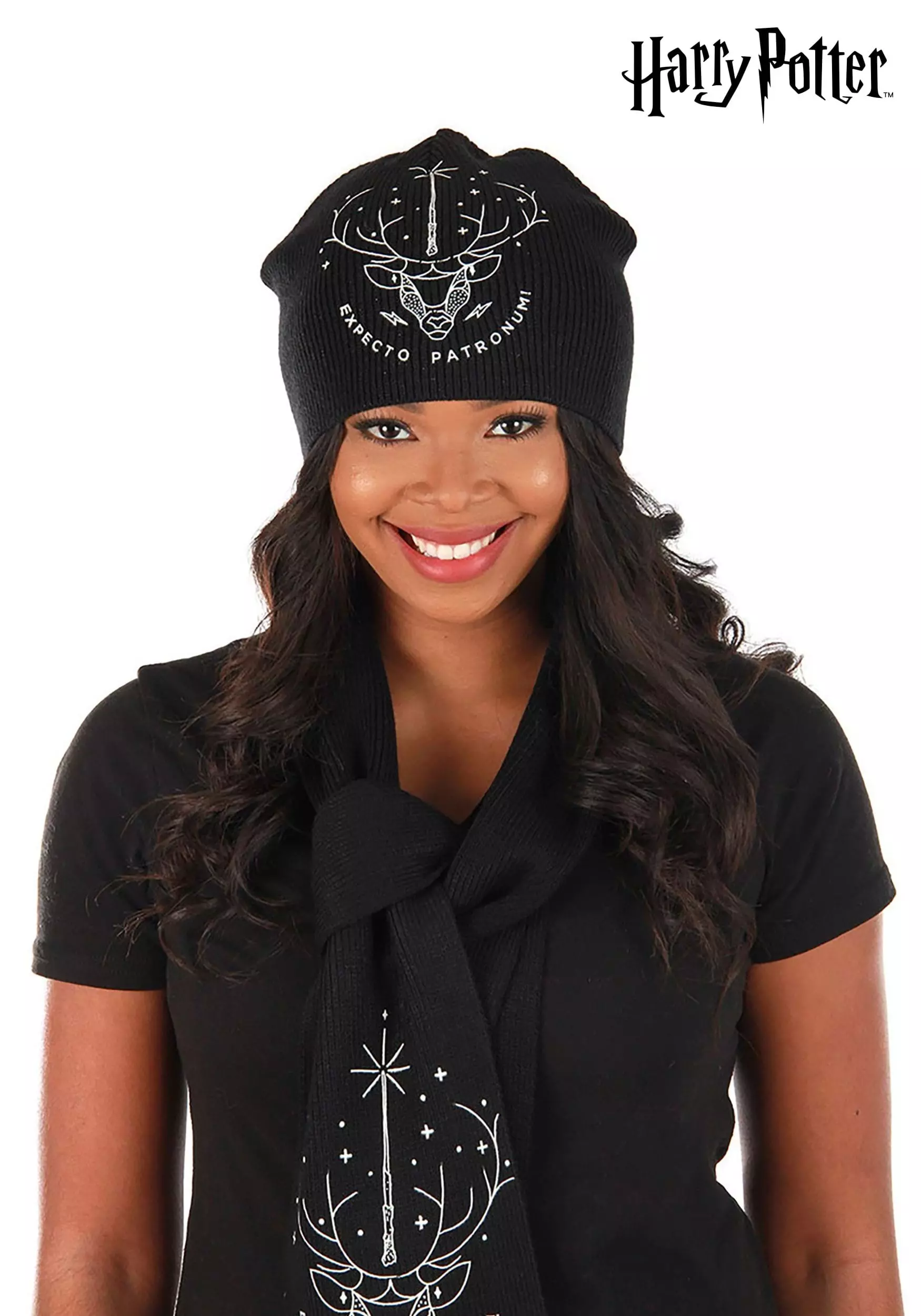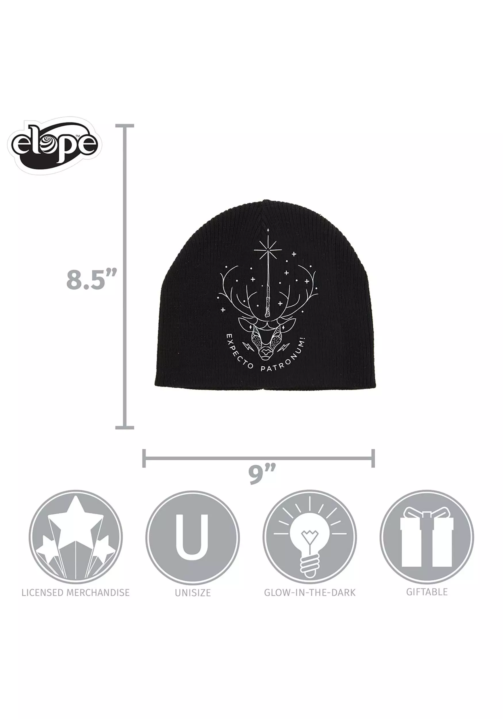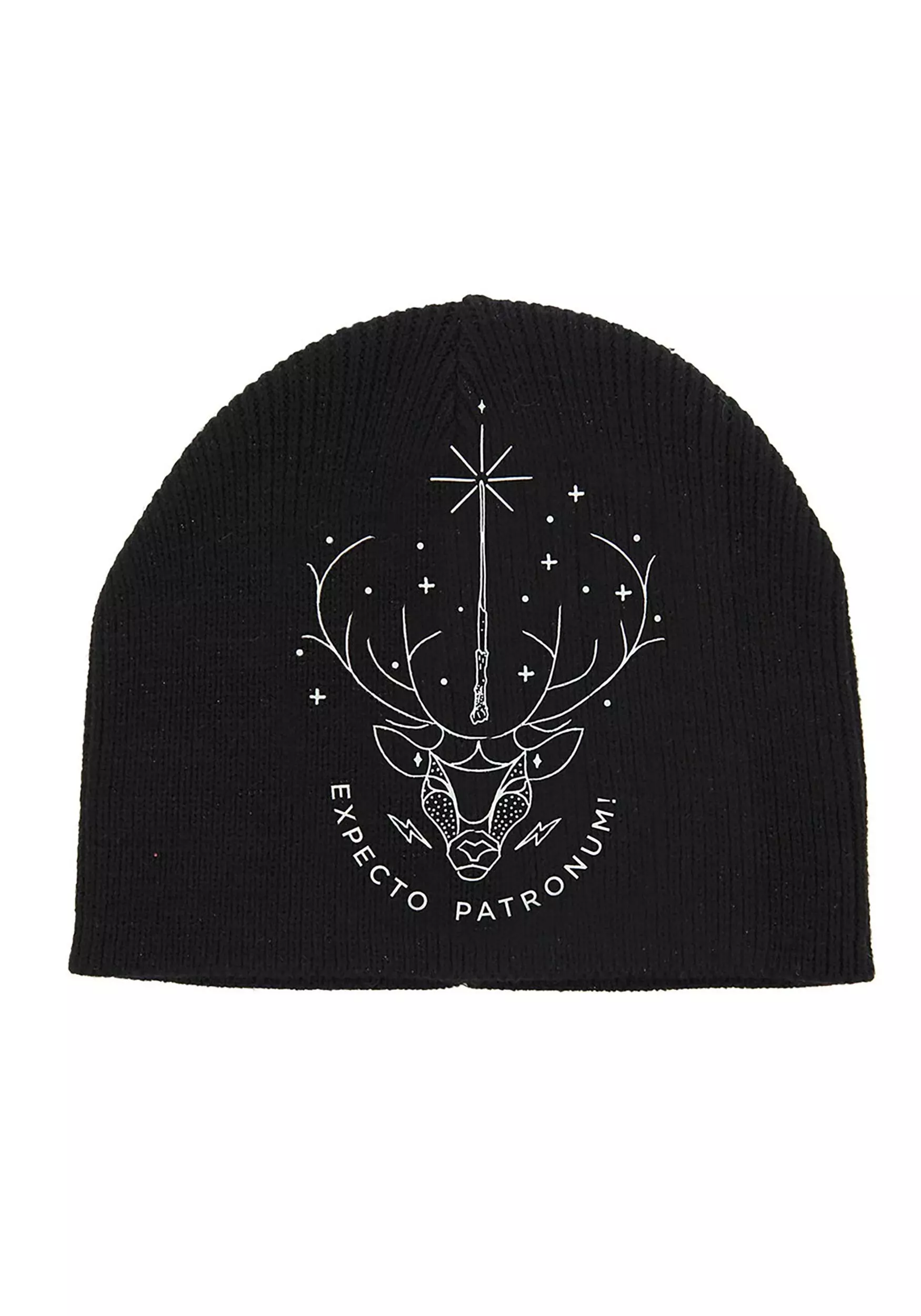 Get yourself outfitted for any Harry Potter worthy journey with this Patronus Glow Knit Beanie! Featuring a glow-in-the-dark print of Harry’s iconic stag Patronus against a glittering, black knit body, this stylish hat will keep you feeling cozy and secure even if you do bump into an unexpected Dementor.