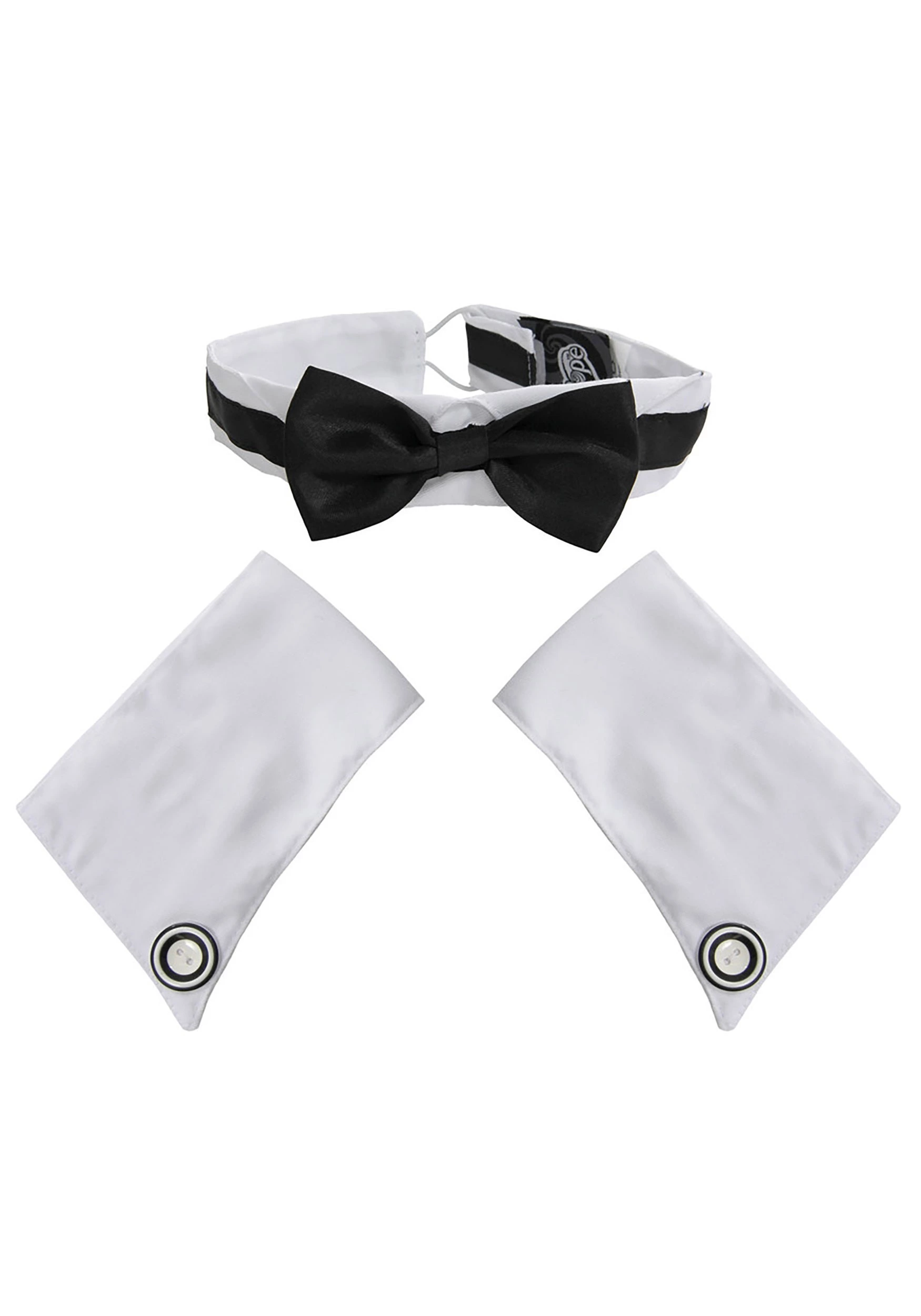 Dance the night away with this Male Dancer Kit. The accessories are 100 percent polyester and include a white collar with an attached black bow tie, along with white sleeve cuffs with decorative buttons on the side. The cuffs have hook-and-loop fasteners. Now all you need is a sexy costume to go with it, and you’ll be ready for center stage!