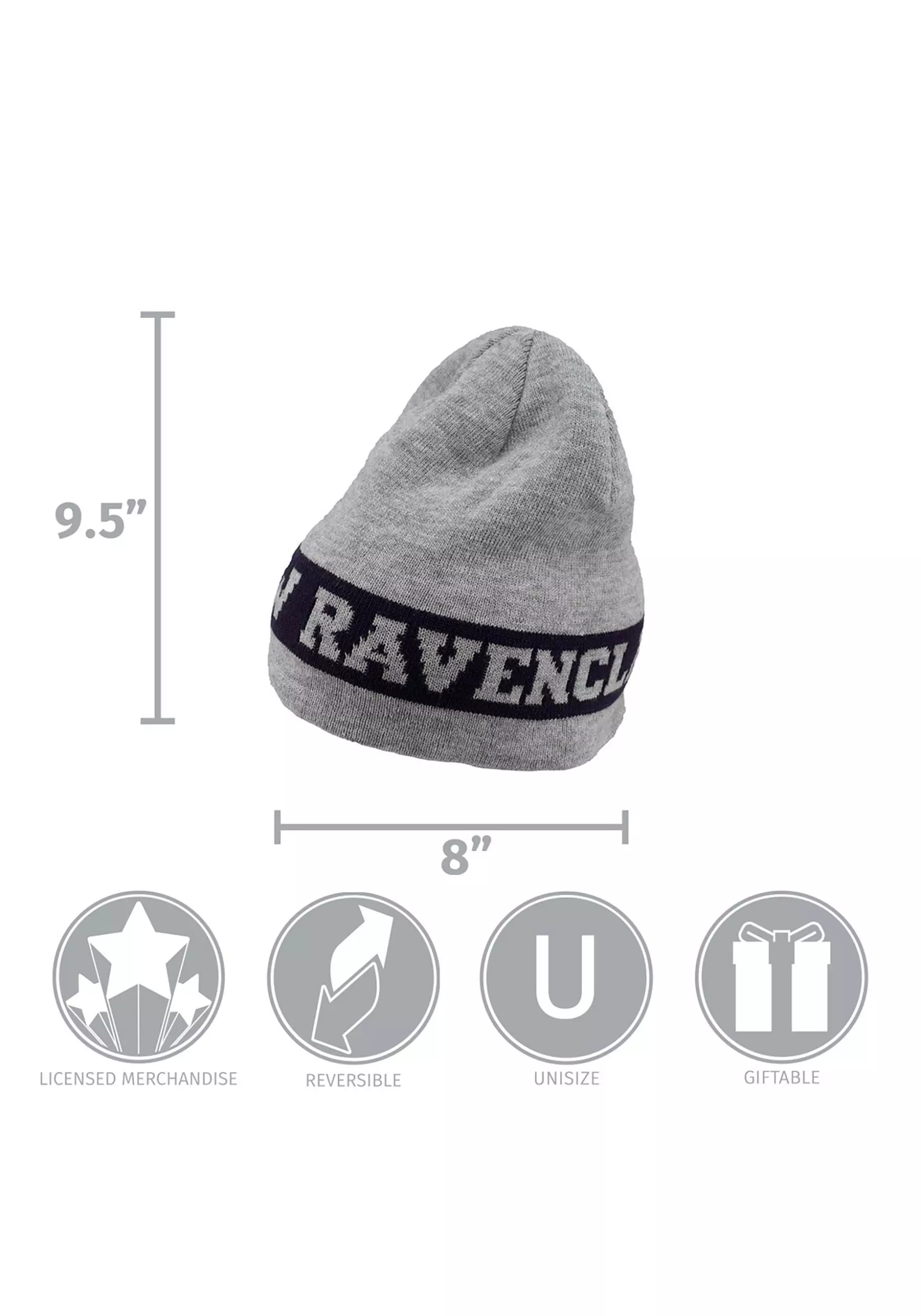 This Reversible Ravenclaw Beanie is a simple hat that’s inspired by the Hogwarts House. The hat has a knit design and comes in the silver color of Ravenclaw. It has a navy stripe around the brim with the house name in the middle. Turn the hat inside out and you get a totally different pattern! The inside-out variant of the hat is navy blue and has “Ravenclaw” knit into the side of the hat, along with the Ravenclaw raven on the side. It’s a great way for muggles and wizards alike to keep their heads warm!
