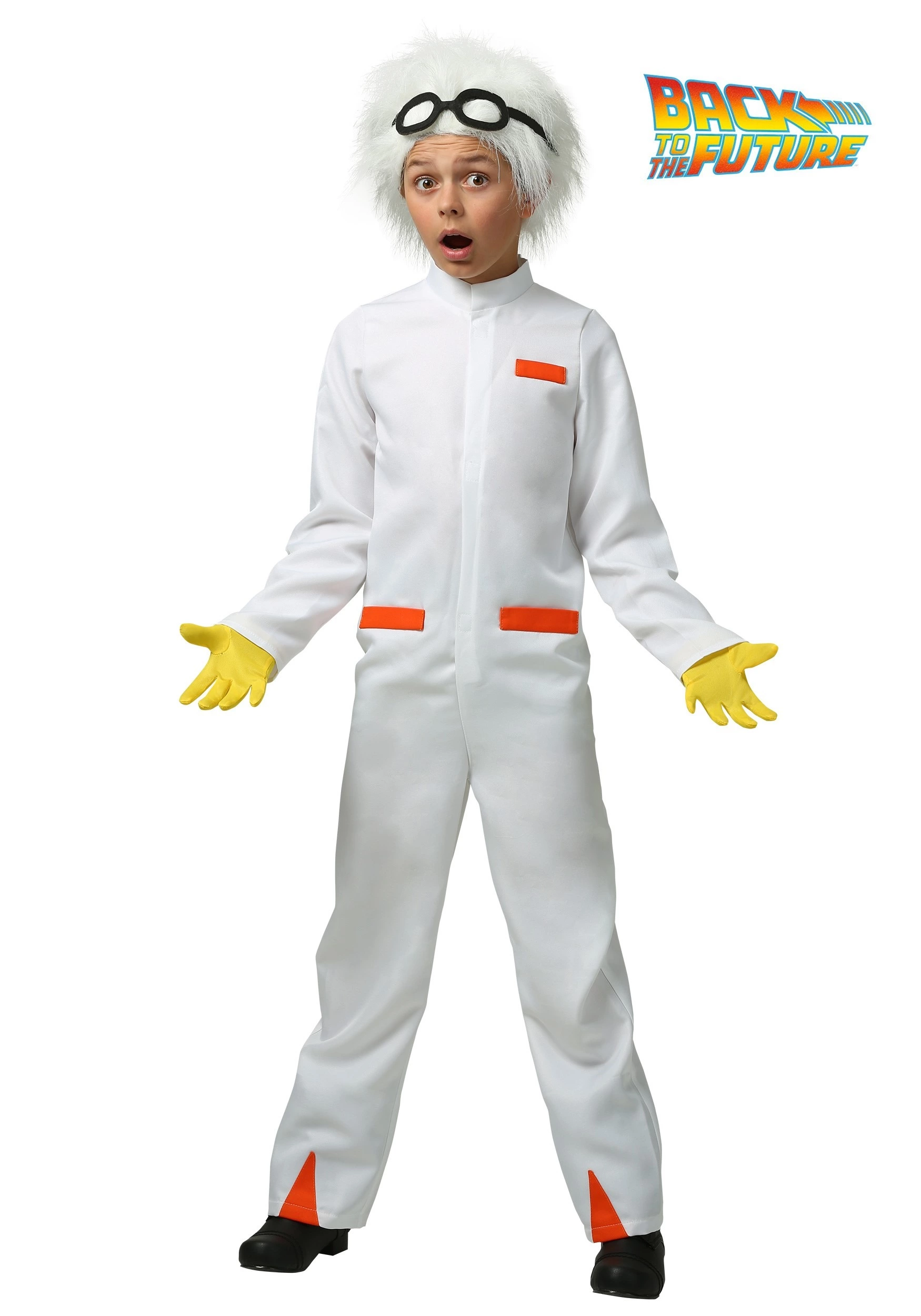 This exclusive child Doc Brown costume comes with a polyester jumpsuit that has a Hook and Loop fastener close front to get your little one into the action with ease. Orange reflective strip details add authenticity to the suit, and the radioactive logo on the back means your little guy might just be preparing to “acquire” some plutonium. Finish the look with the included pair of goggles and the manic white haired wig that copies Christopher Lloyd’s signature look in the series. Just get your kid some rubber gloves, maybe a dog named Einstein, and he’ll be ready to fire up those time circuits!