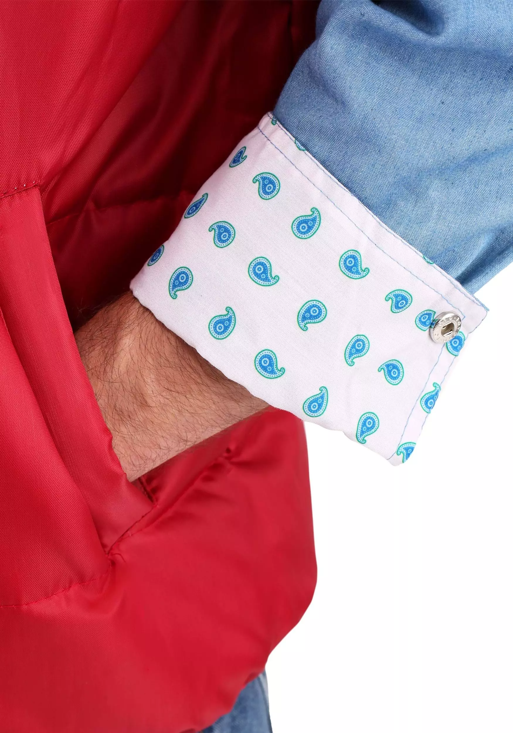 This licensed costume is a plus size version of our classic Back to the Future inspired outfit. It comes with a plaid short-sleeved shirt that buttons up in front. The blue jacket fits over top and has a vintage 1985 style. The red vest, which has a layer of fiberfill inside, finishes the look! The costume even comes with a few great accessories to take your look to the next level. The holographic card is inspired by the photograph seen in the movie and the included flyer adds extra authenticity to your Marty McFly look.