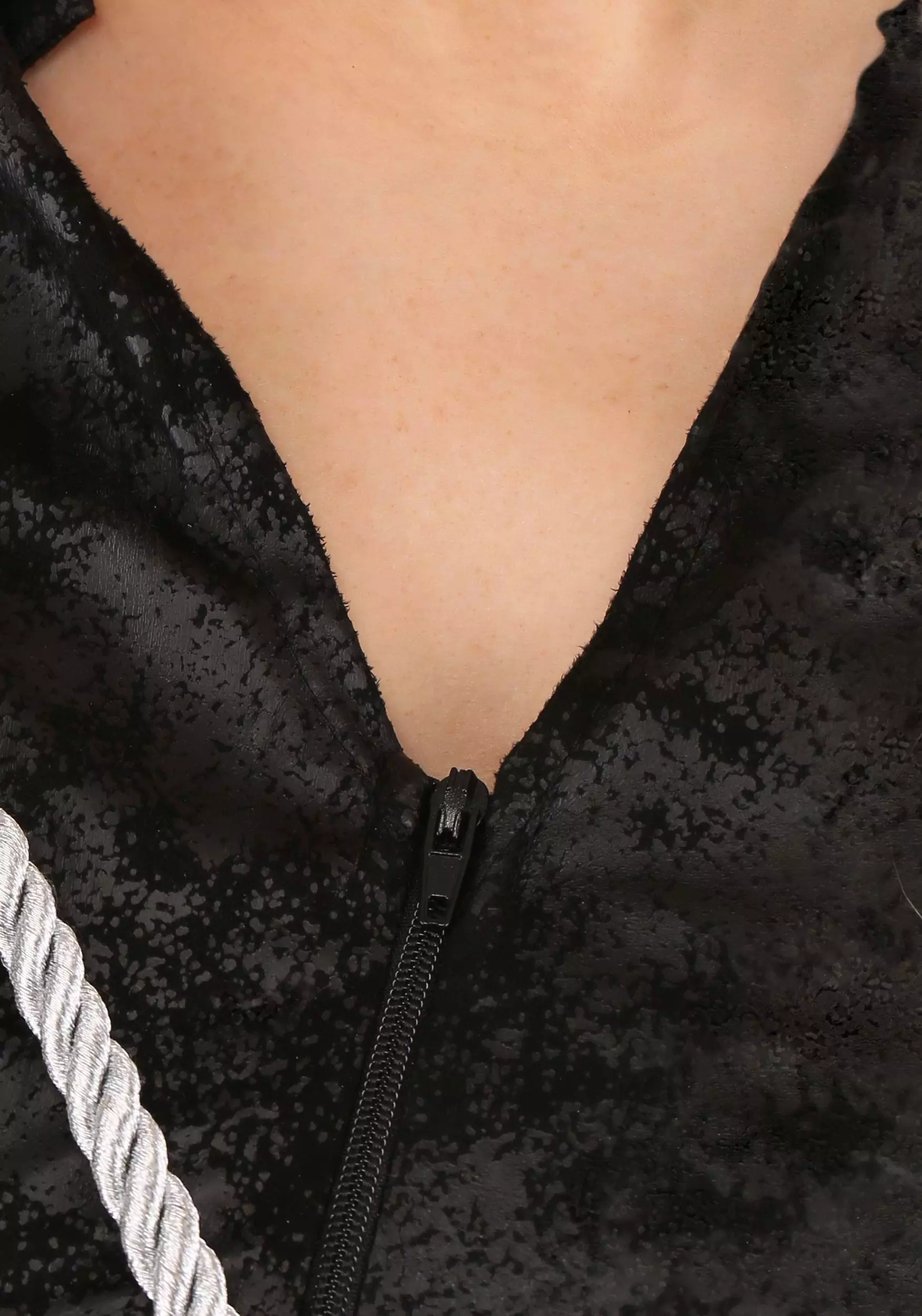 Which brings us back to this sweet dress costume. In black (because black is totally in this season) this costume features faux suede leather to make it look like you’re layering up for winter, and it even comes with a silver cord, because who’s going to take a warrior queen seriously without some extra bling?