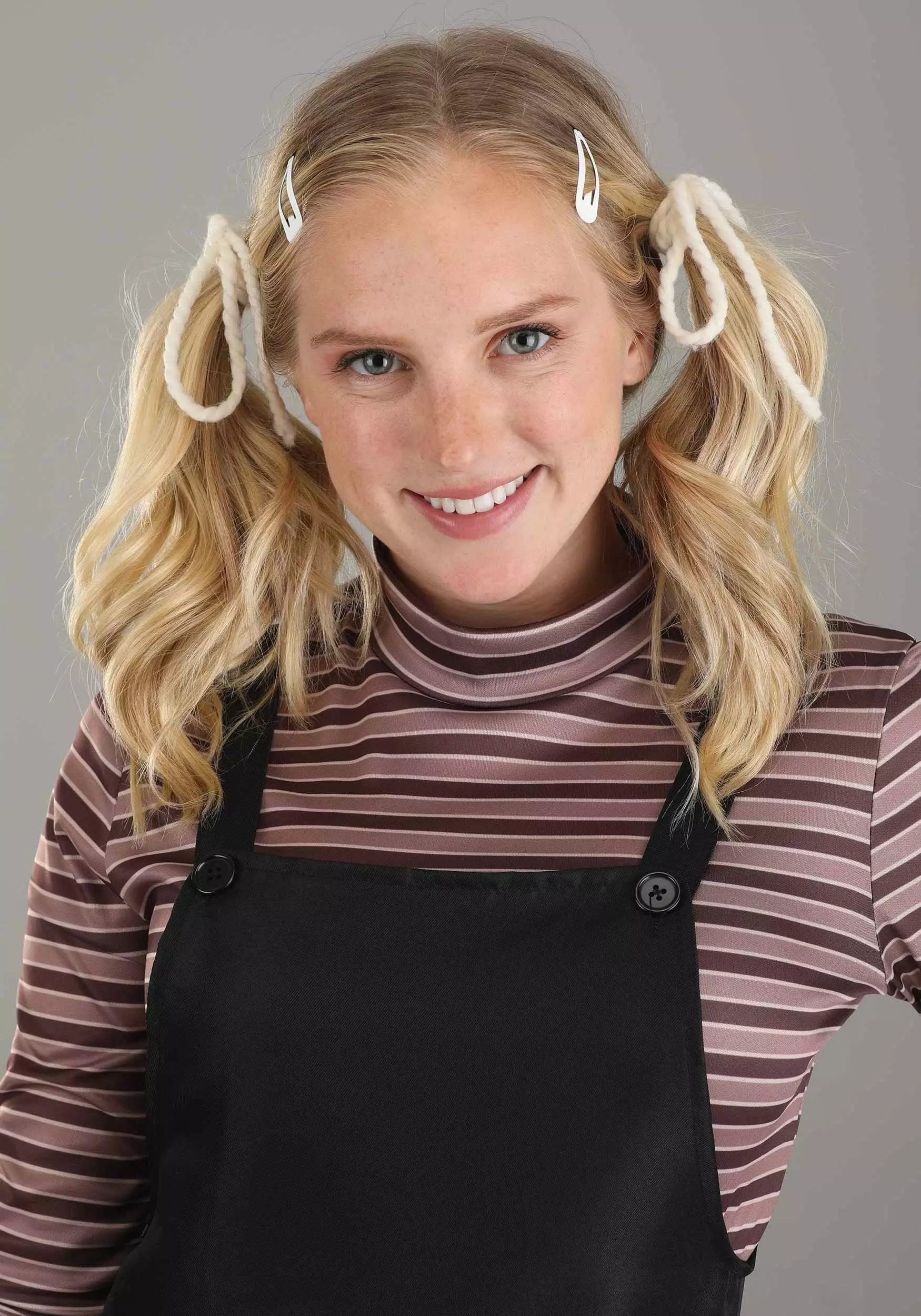 Many of us have imagined what it would be like to be the first humans to meet an extraterrestrial. Would we have things in common? Go on adventures? Of course, the first step would be to figure out how to talk to them. Fortunately, we can all take inspiration from Gertie and her creative thinking. And now, you can dress up as her, too with this officially licensed Adult Gertie costume from E.T. the Extra-Terrestrial. The striped shirt and overalls are a recreation of little Gertie’s style and a pair of hair bows have you set for her spunky attitude. The flower pot bag is an ideal accessory whether seeing off a friend or completing a group costume!