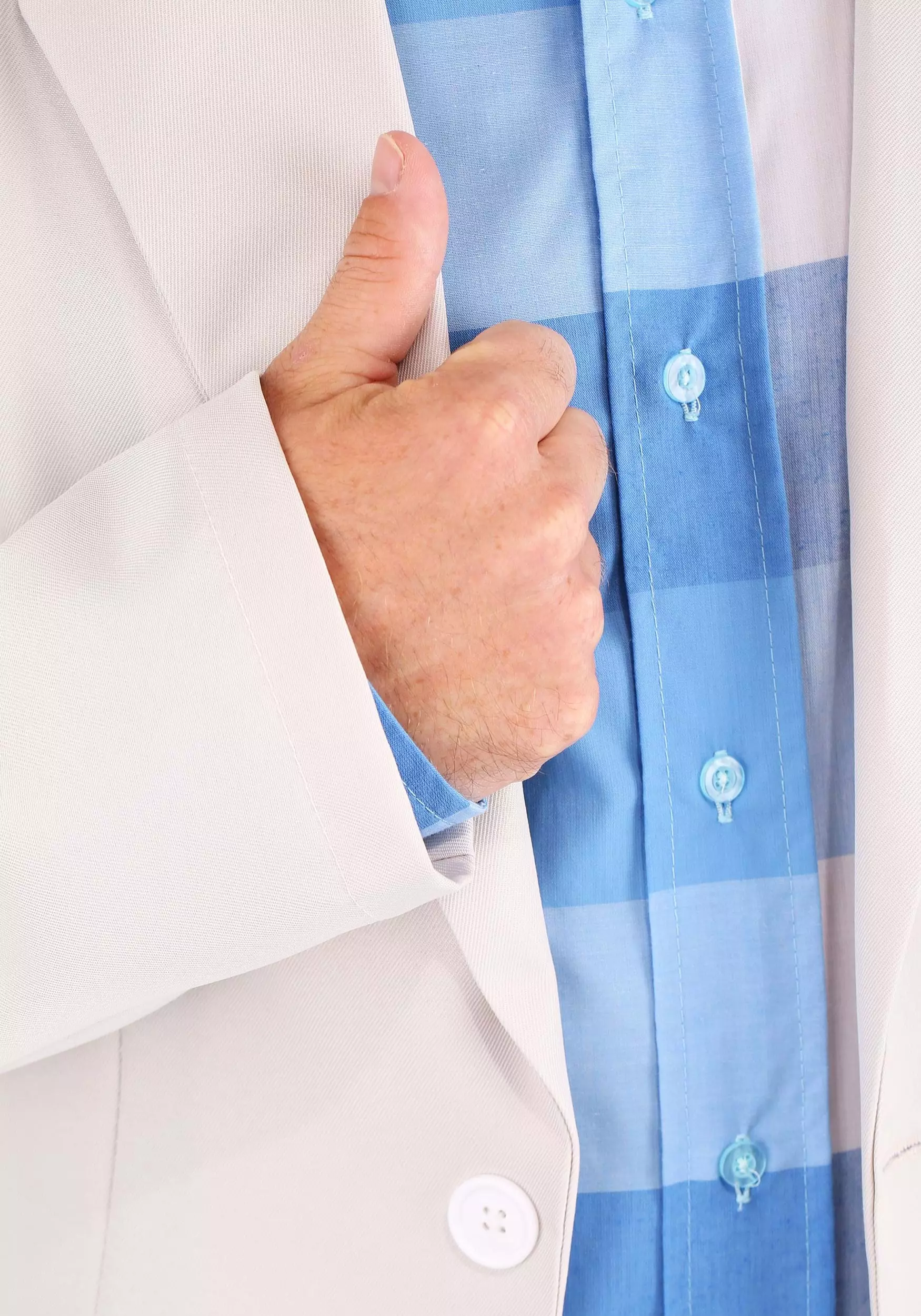 - Checkered broadcloth shirt buttons at center front & at sleeve cuffs