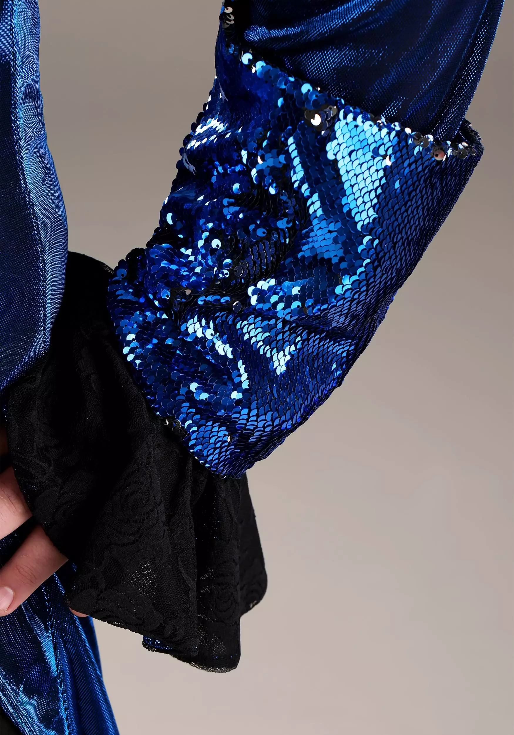 - Jacket has sequin-covered collar, lapels & wide sleeve cuffs