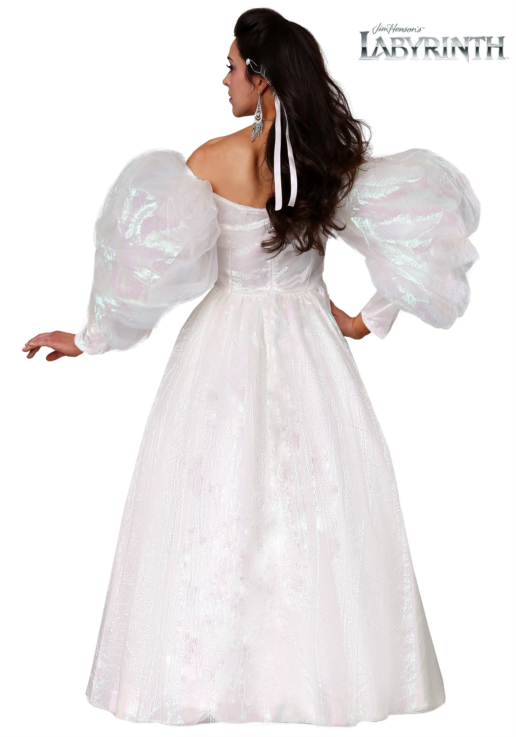 Our team of costume designers weren’t able to solve the mystery of the labyrinth. But they did manage to come back with some dance magic level costume for you to roleplay as your favorite characters! This officially licensed Adult Sarah Costume is an exclusive inspiration from the Goblin King’s own royal ball. The gossamer gown has a sweetheart neckline with huge puff taffeta shoulders. No would-be queen of Jareth is complete without a crown, so this hair clip features shiny thin metallic ribbons of gold and silver that can be curled into your hair.