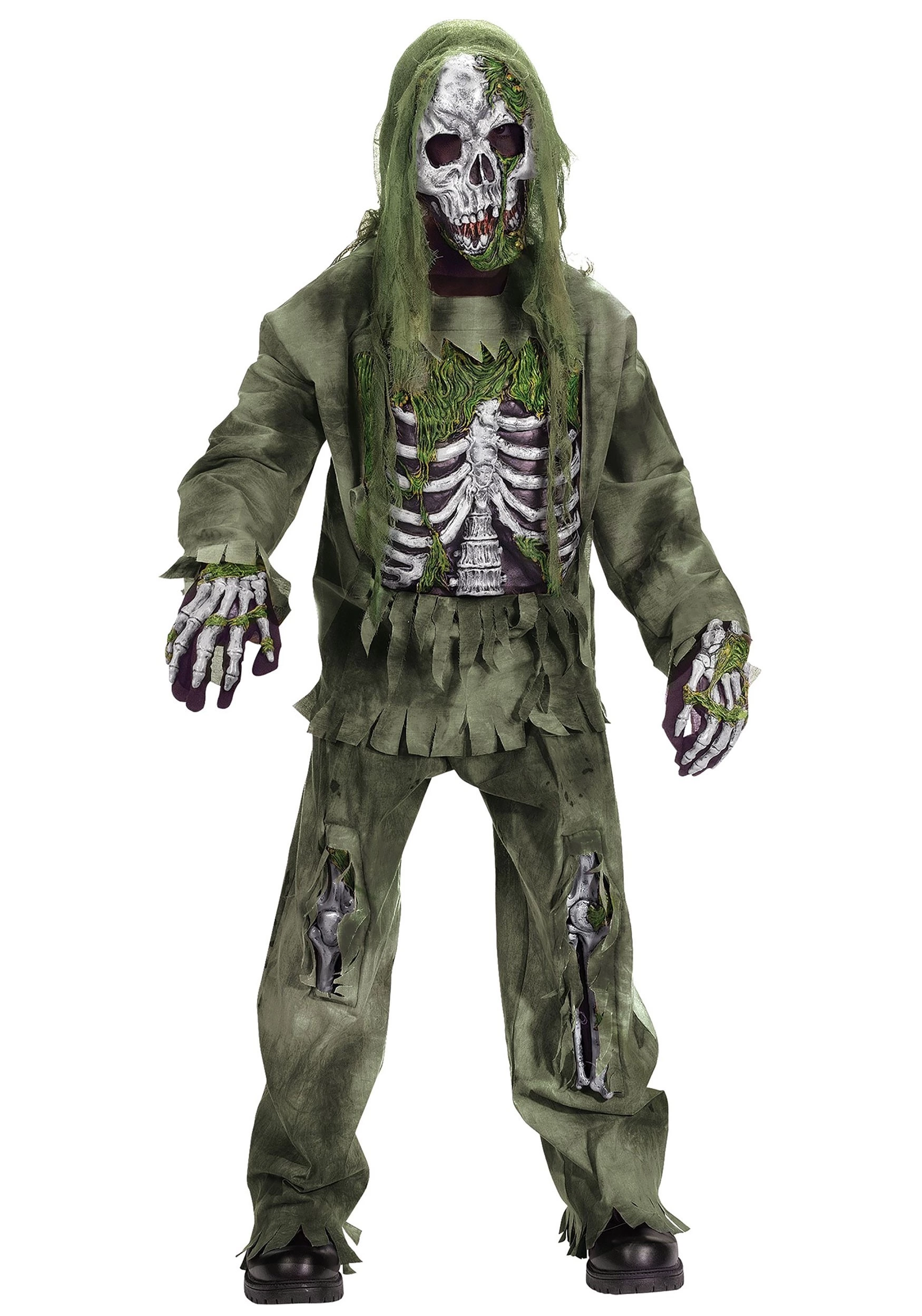 This skeleton zombie costume comes with a top, pants, mask, and a pair of gloves. The shirt and pants both features attached foam sections with skeletal details. It also gets a lot of its scare factor from the latex skeleton mask with mesh over the eyes. Skeleton gloves are the finishing touch. This classic costume is sure to let any kiddo become just the kind of creepy character they’d like to be this Halloween!