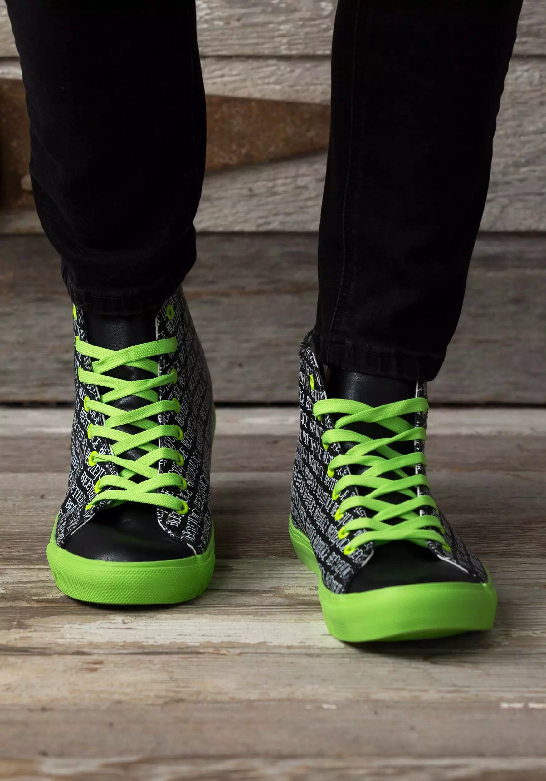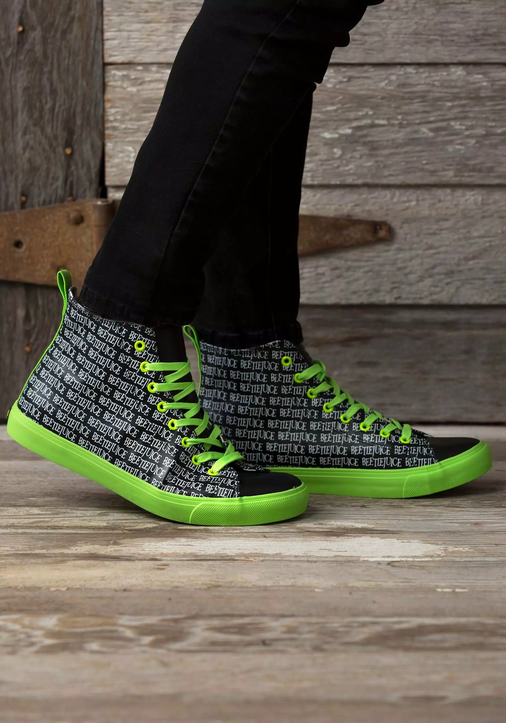 This is a Beetlejuice Printed Logo Adult Hi-Top Sneakers.