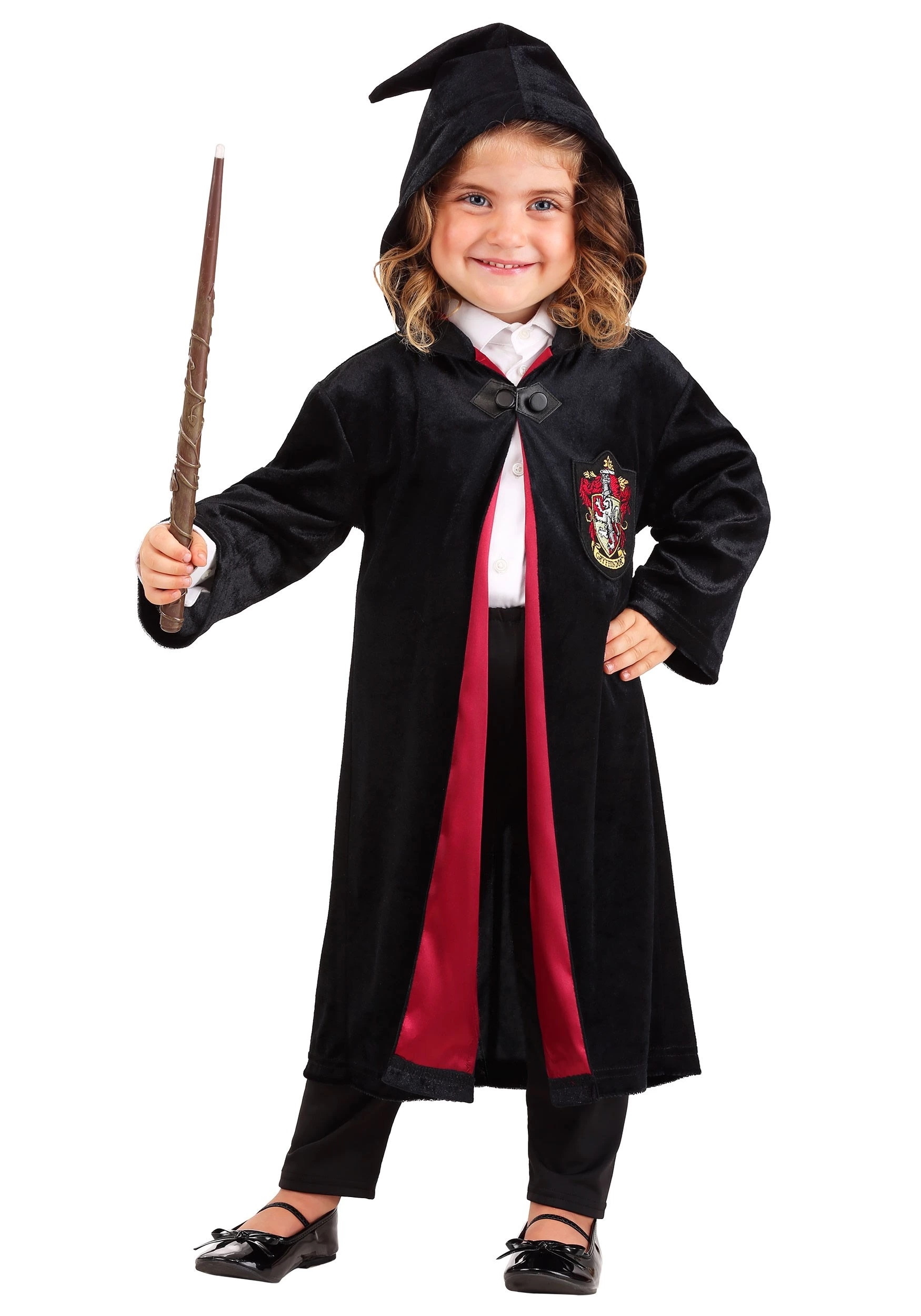 - Embroidered Gryffindor crest patch on left breast