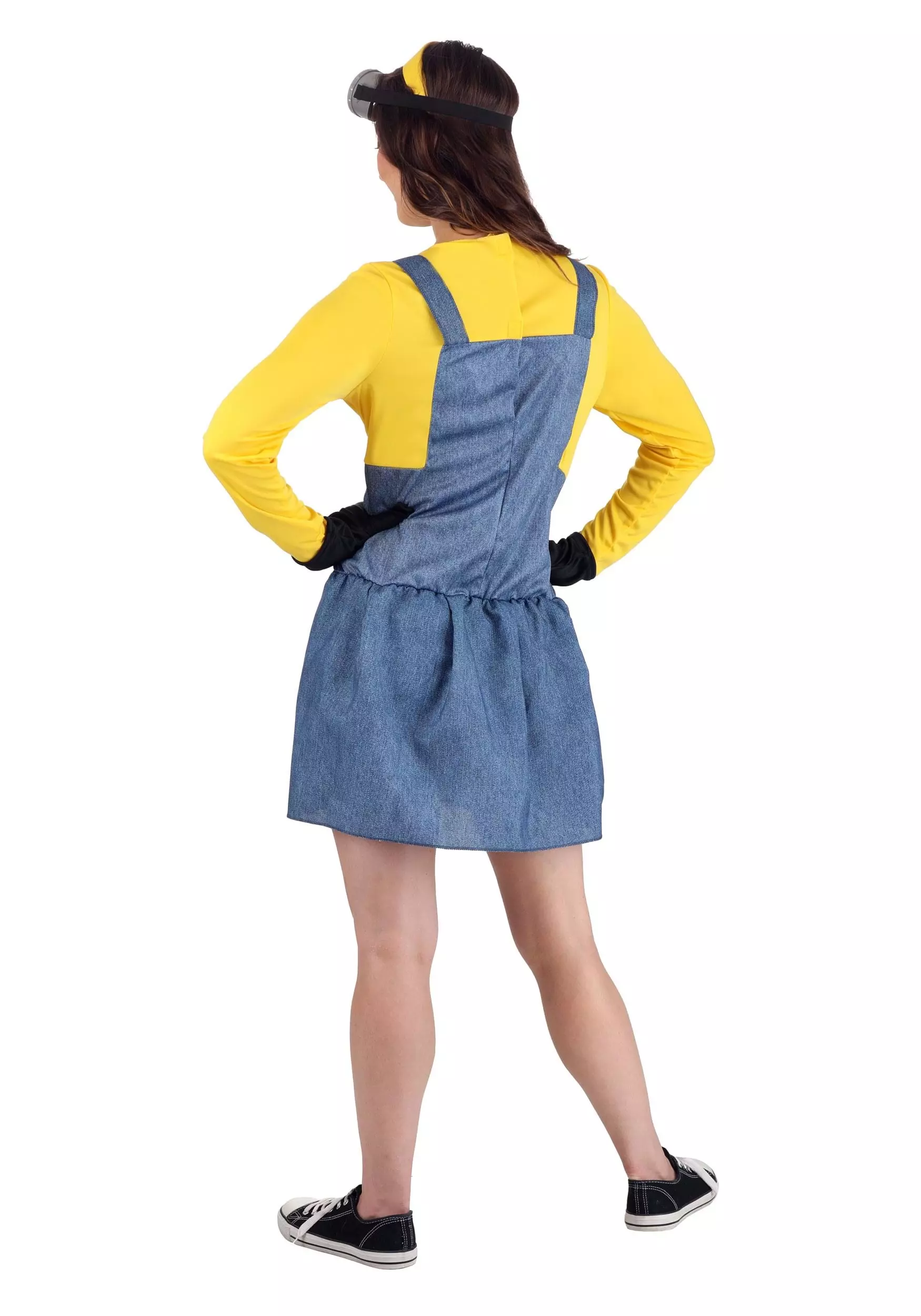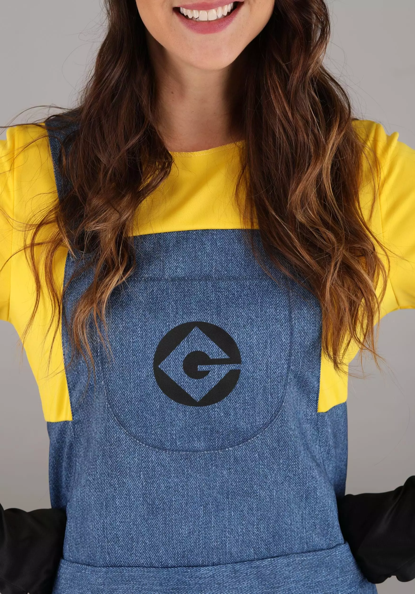 Take over the world one banana at a time when you wear your officially licensed Minion Costume for Women! The exclusive outfit includes a sweet minidress that’s designed to look like a yellow shirt under a denim overall jumper. Buttons decorate the overall straps and Gru’s symbol is printed across a large pocket in the center of the chest. Black gloves protect your hands while you fire freeze rays. The headband is covered with yellow favric and the round plastic lab goggles can be adjusted to fit as desired.