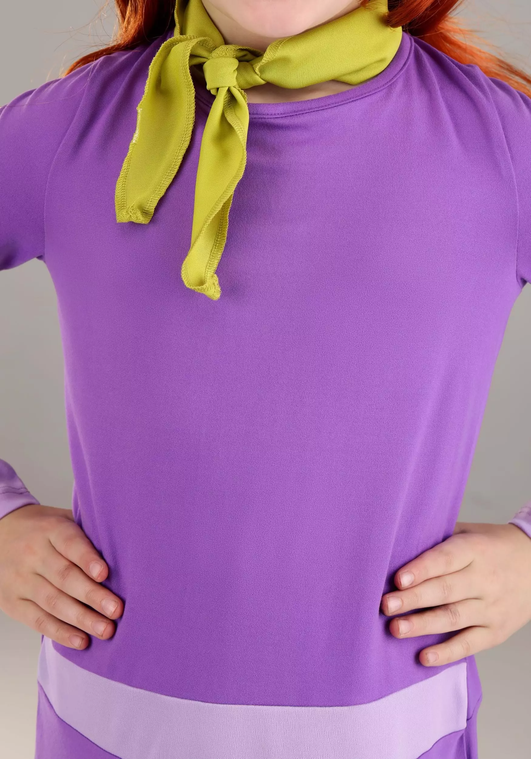 Inspired by the classic character from Scooby-Doo, this kid’s Daphne Costume comes with everything your little one needs! The costume starts with a soft, pullover dress in the signature purple color that Daphne wears in the cartoon. The dress is made out of a spandex blend material, so it stretches to fit. The cuffs and the edge of the skirt have a lavender accent stripe to give a nice contrast to the deep purple of the dress. The green scarf can be tied around your child’s neck as desired and the lavender headband really puts the finishing touch on the outfit. Your child will be ready to solve a mystery in no time!