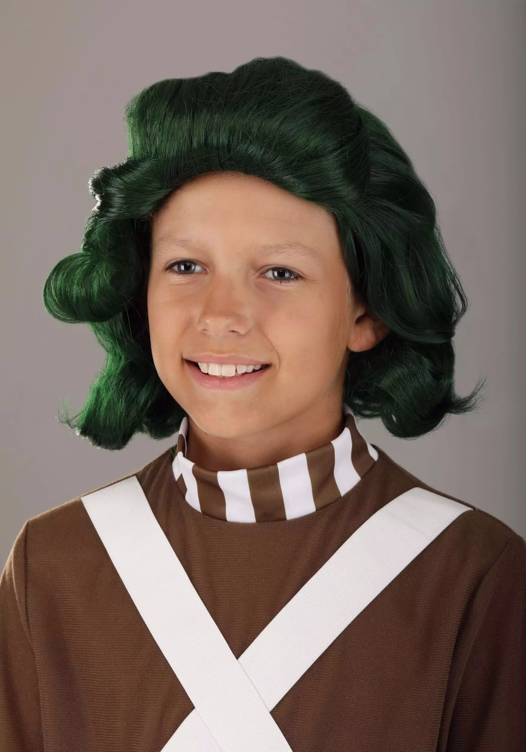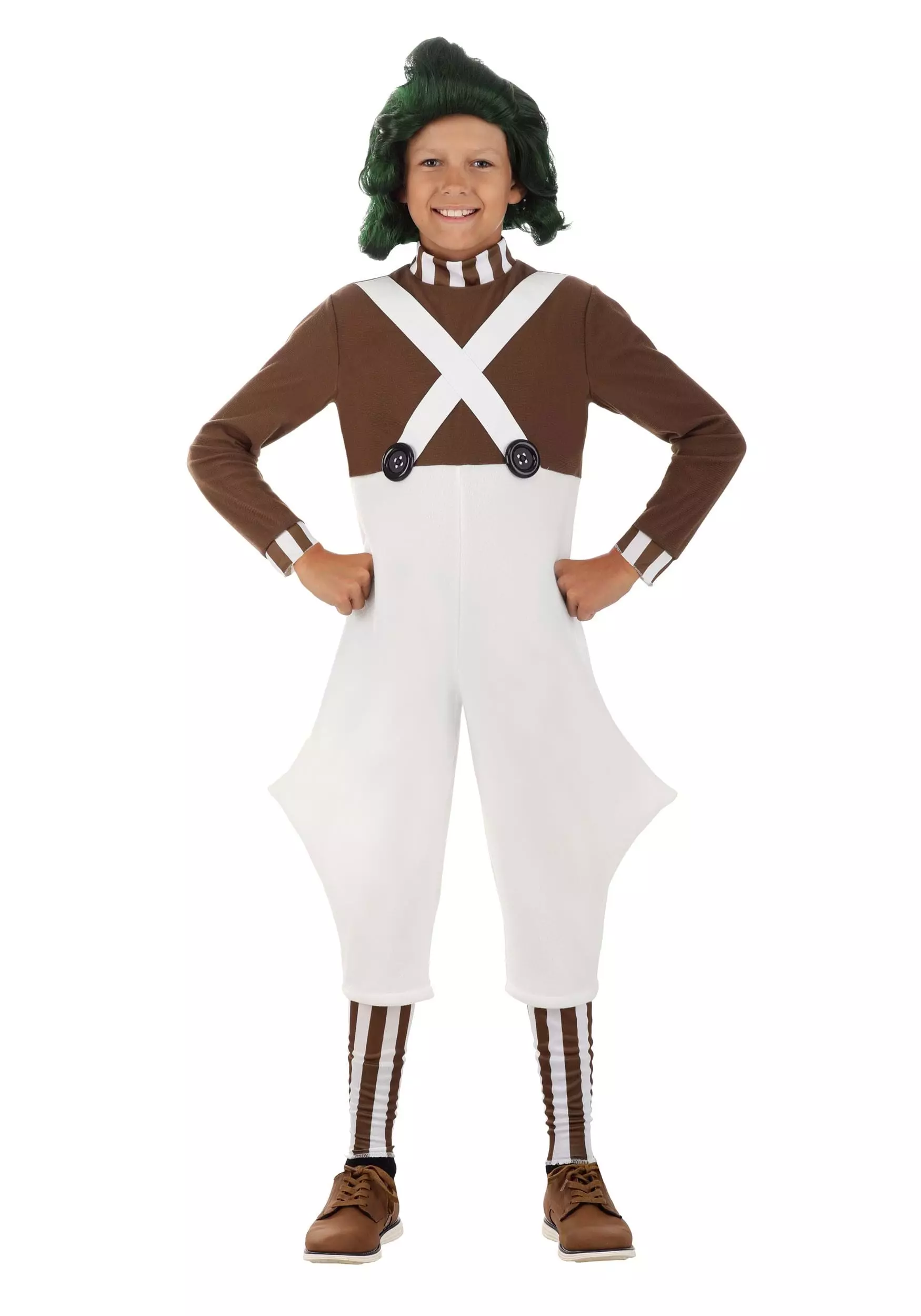 Before punching in for your shift at the chocolate factory (or going trick-or-treating), make sure you put on your officially licensed, exclusive Willy Wonka Oompa Loompa Costume for Kids! The polyester jumpsuit fastens up the back and is designed to look like a chocolate brown shirt underneath a pair of pants with criss-crossed suspenders and buttons. The striped leg warmers match the brown and white trim on the neckline and sleeve cuffs. All you need for a prop is a big bag of candy!
