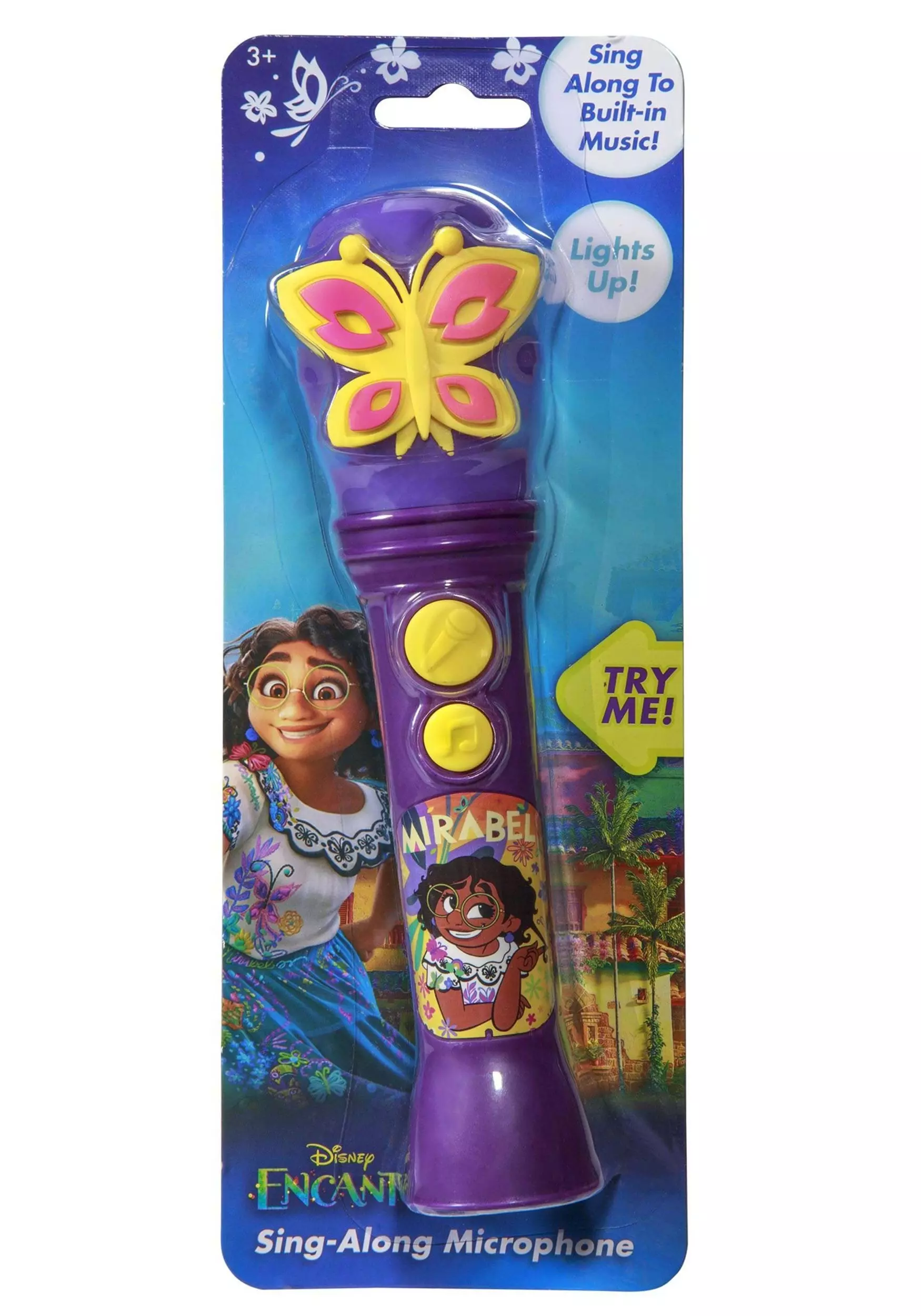 Help your child find their own unique voice with this Encanto Microphone! Its easy-to-use design features two buttons and a speaker on the bottom. The first button makes the toy function like a regular microphone by amplifying whatever your kiddo says or sings. The second button plays music from Encanto for your little one to sing along with. The top of the accessory is decorated with an adorable pink and yellow butterfly and lights up when in use. Whether your child wants to sing along with Mirabel or come up with their own new composition, they’ll love letting their music be heard with this cool microphone!