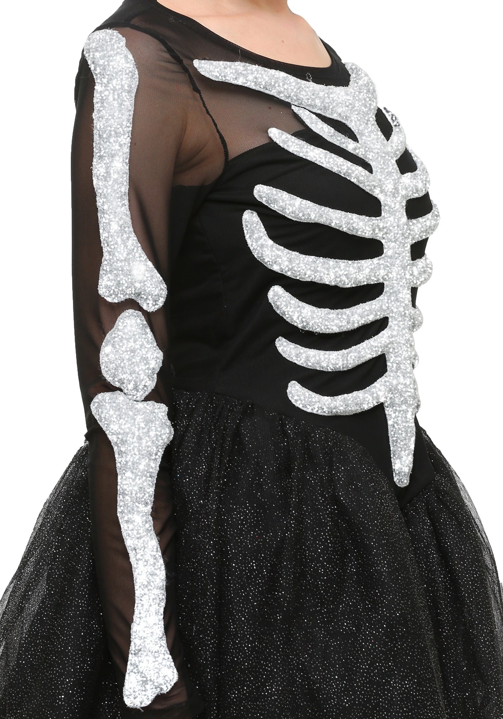 - Glittery 3 dimensional skeleton detail sewn to chest and arms