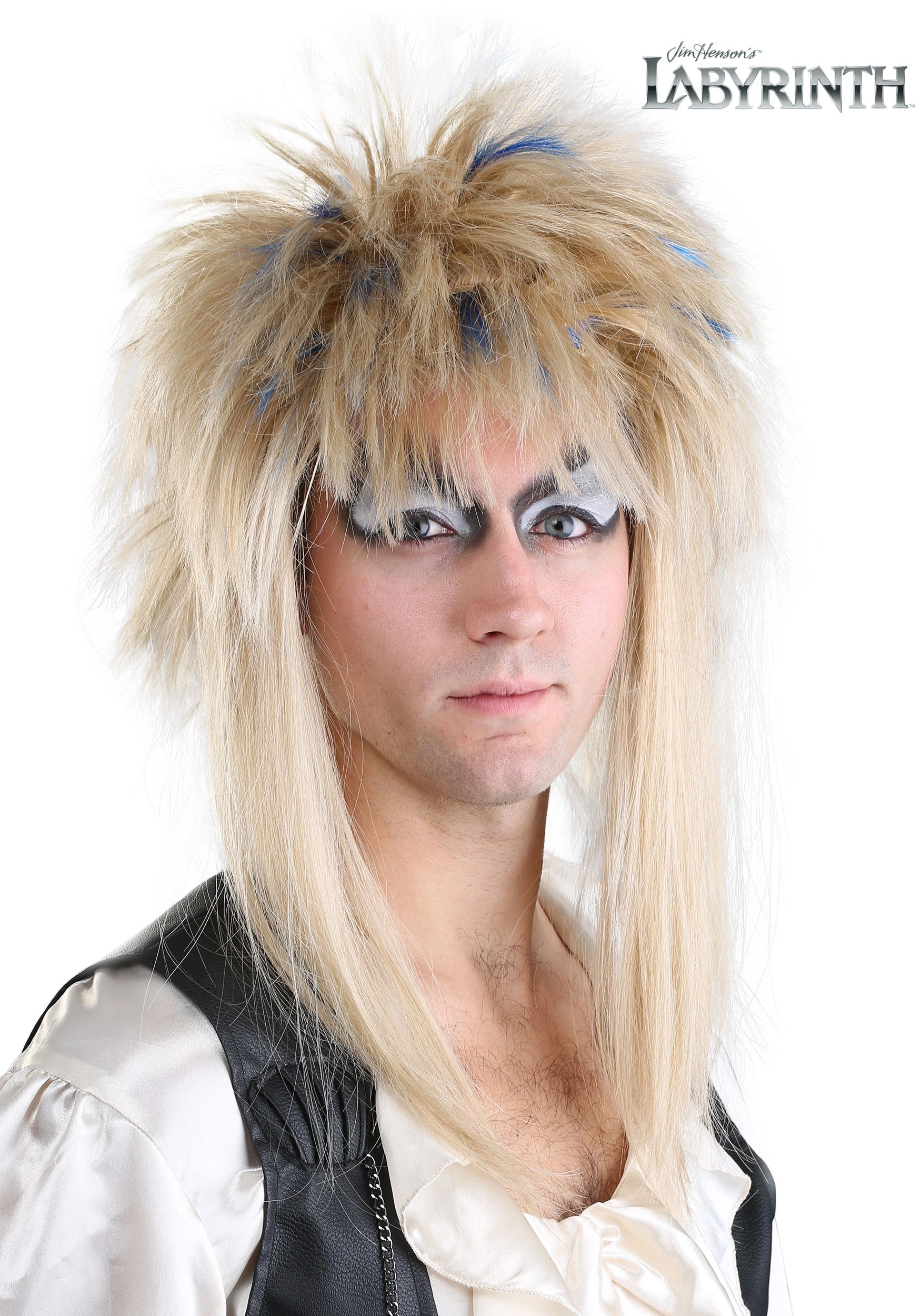 Channel your inner Goblin King and become the mystifying magic man, himself, with this exclusive Jareth Wig from Labyrinth. Our own magical designers faced the twisting walls, Fireys, and Helping Hands alike to replicate the top-notch style of Jareth. This licensed, styled wig is a perfect recreation of the iconic look of the Goblin King from the long blonde locks and shorter fiber spikes to the glittering blue accents.