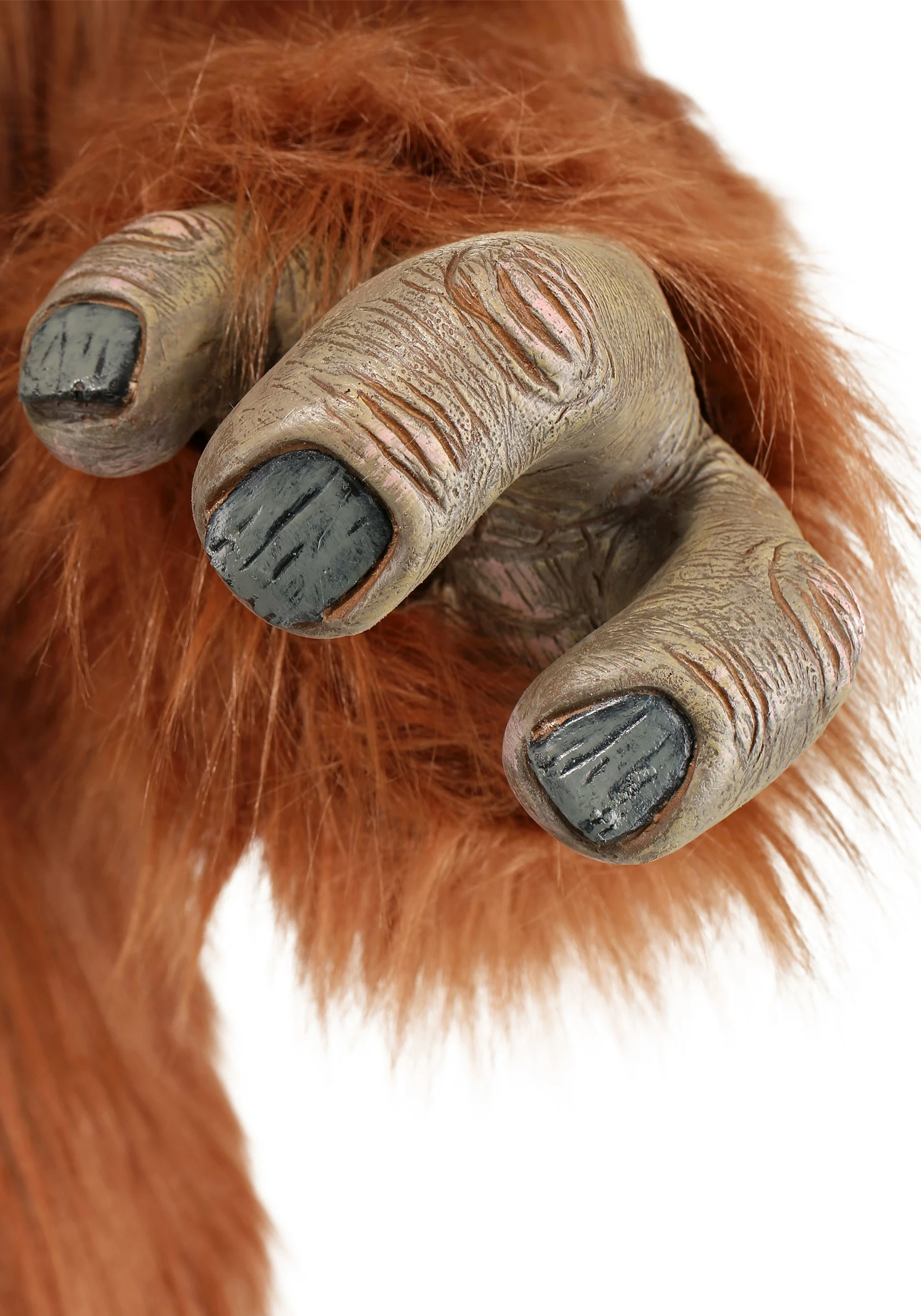 - Three-fingered hands are molded latex w/ tuft of faux fur on back