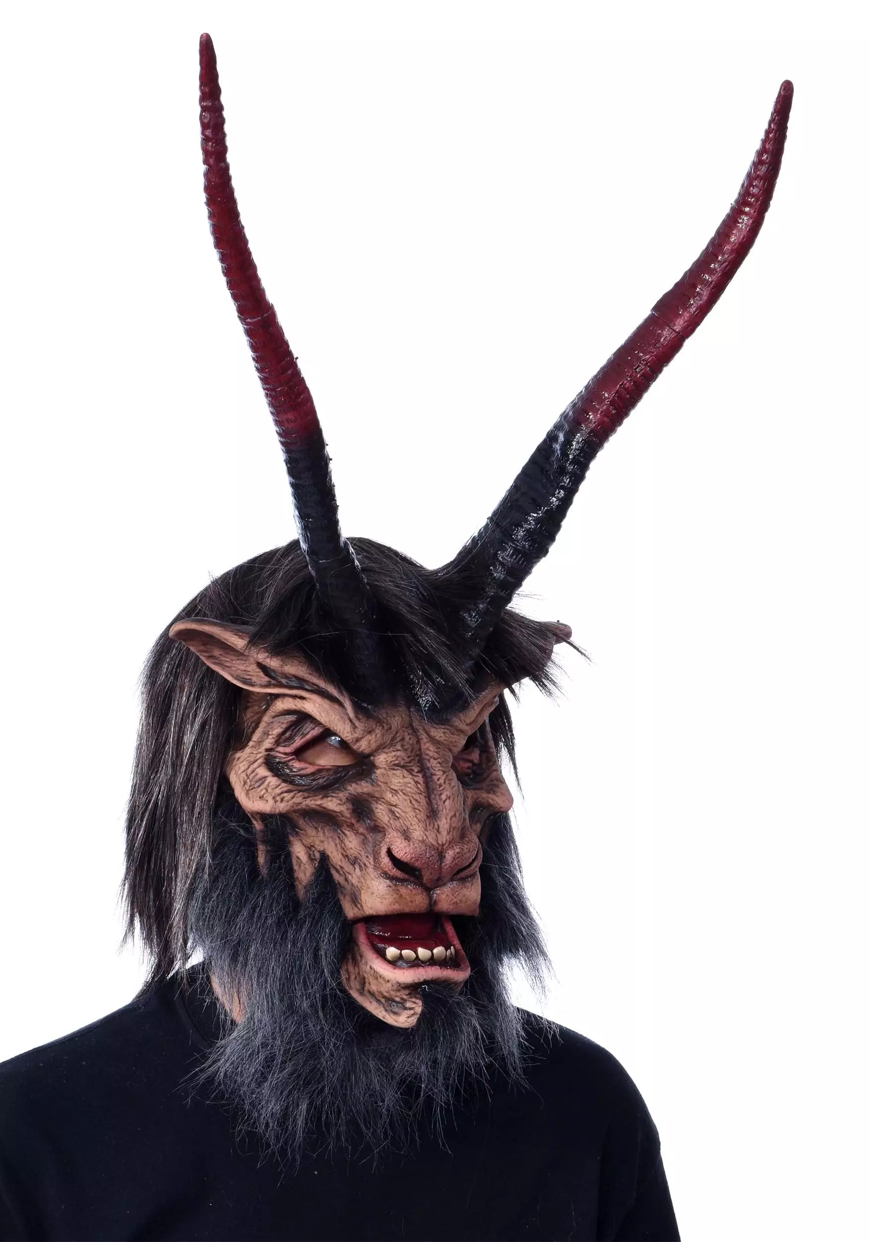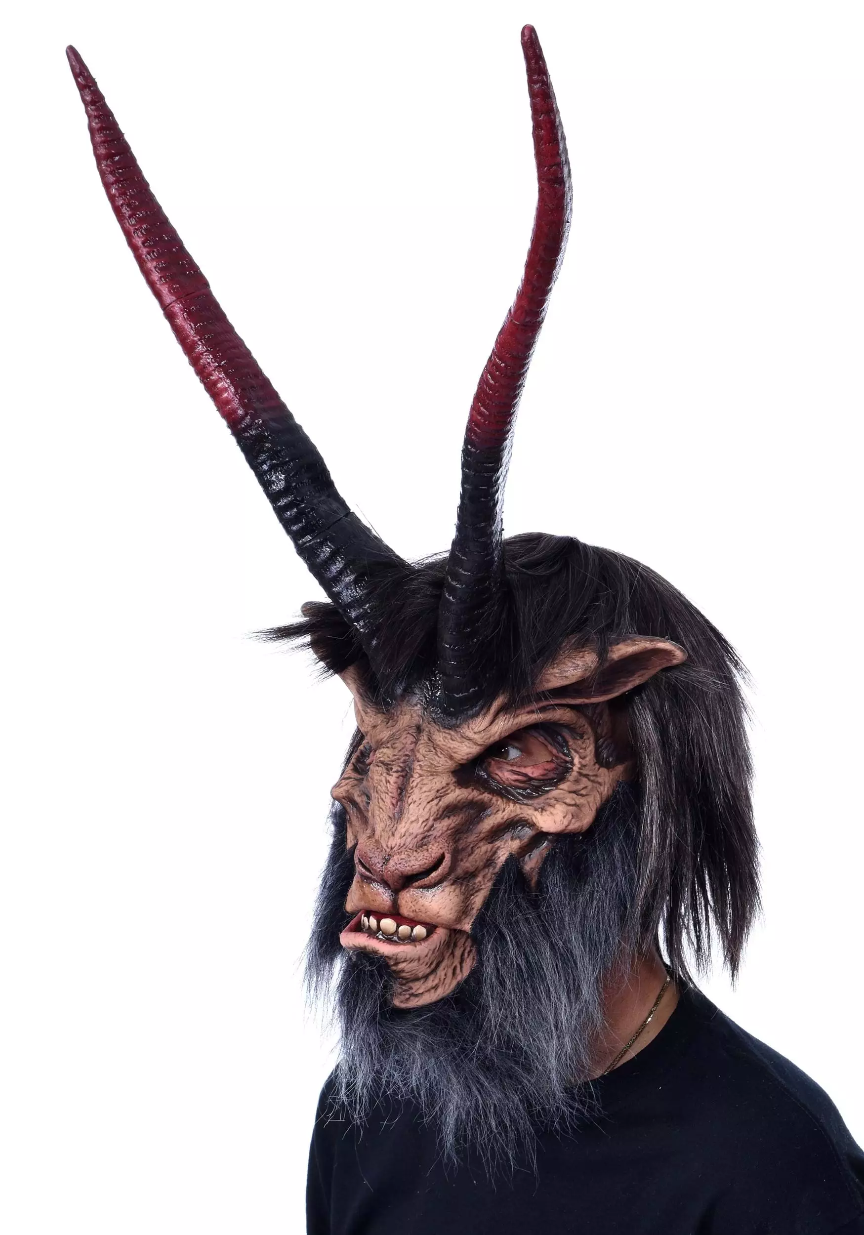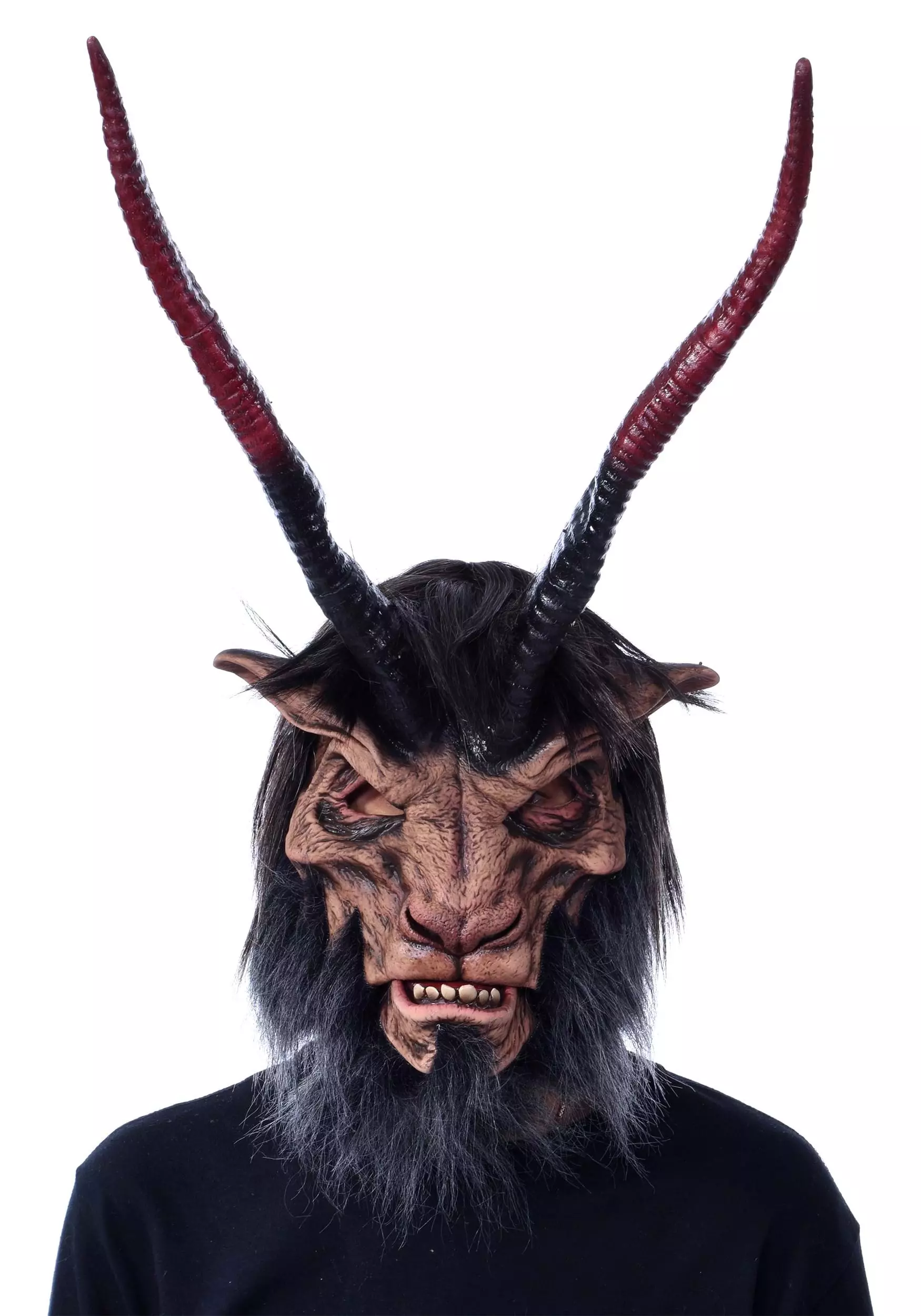 Become the stuff of nightmares in this Underworld Overlord Mask for Adults! The molded mask looks a little like an evil goat’s head, with bared teeth, pointed ears, and extremely tall, twisted black and red horns. Faux fur covers the forehead, sides, and juts out from the chin and cheeks. Eye holes allow you to see where you’re going.